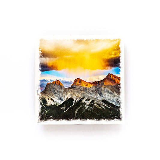 Sunrise in Kananaskis Country Canadian Rockies Birch Wood Photo Coaster