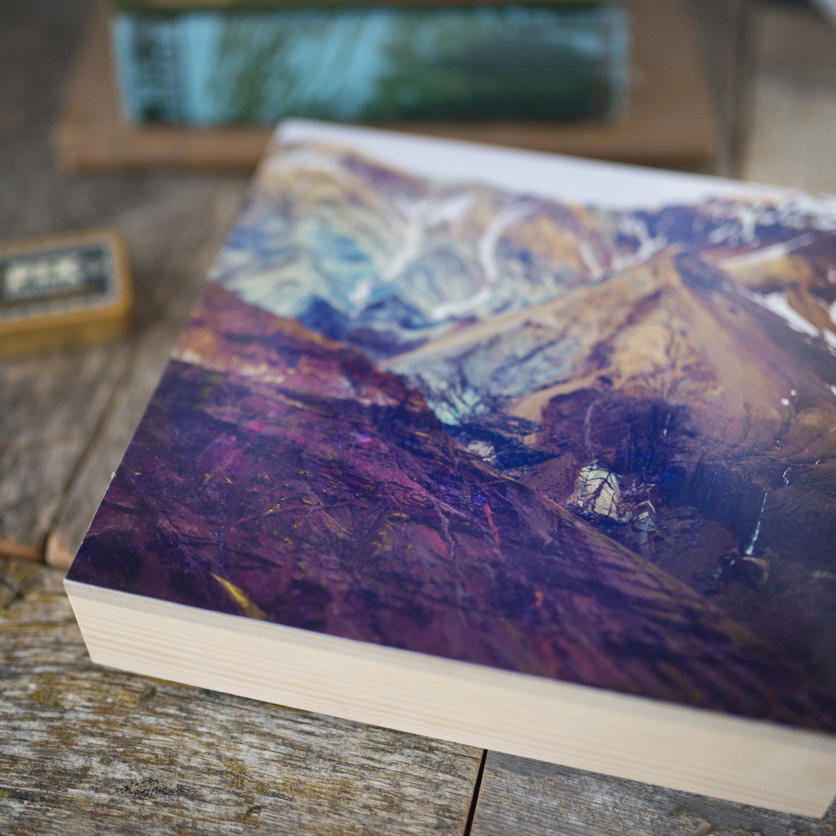 • My glossy blocks are produced with a metallic print mounted to a wooden block that has a special coating applied. This coating can sometimes contain small surface imperfections such as minor 'craters' or 'bumps'. I carefully coat my images, but it is done by hand. Unfortunately I cannot remake blocks due to these imperfections.