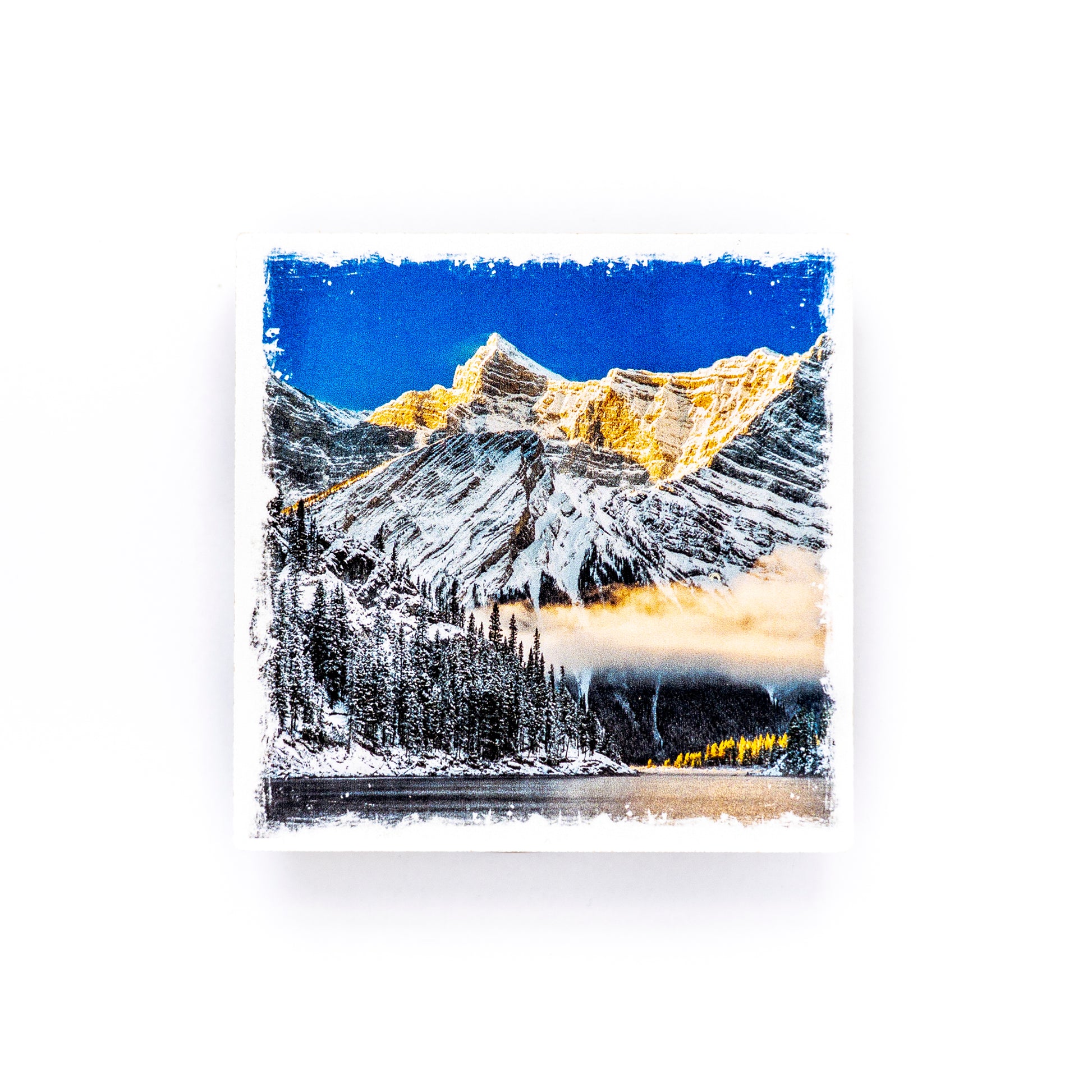 Canadian Rockies Winter Sunrise Birch Wood Photo Coaster