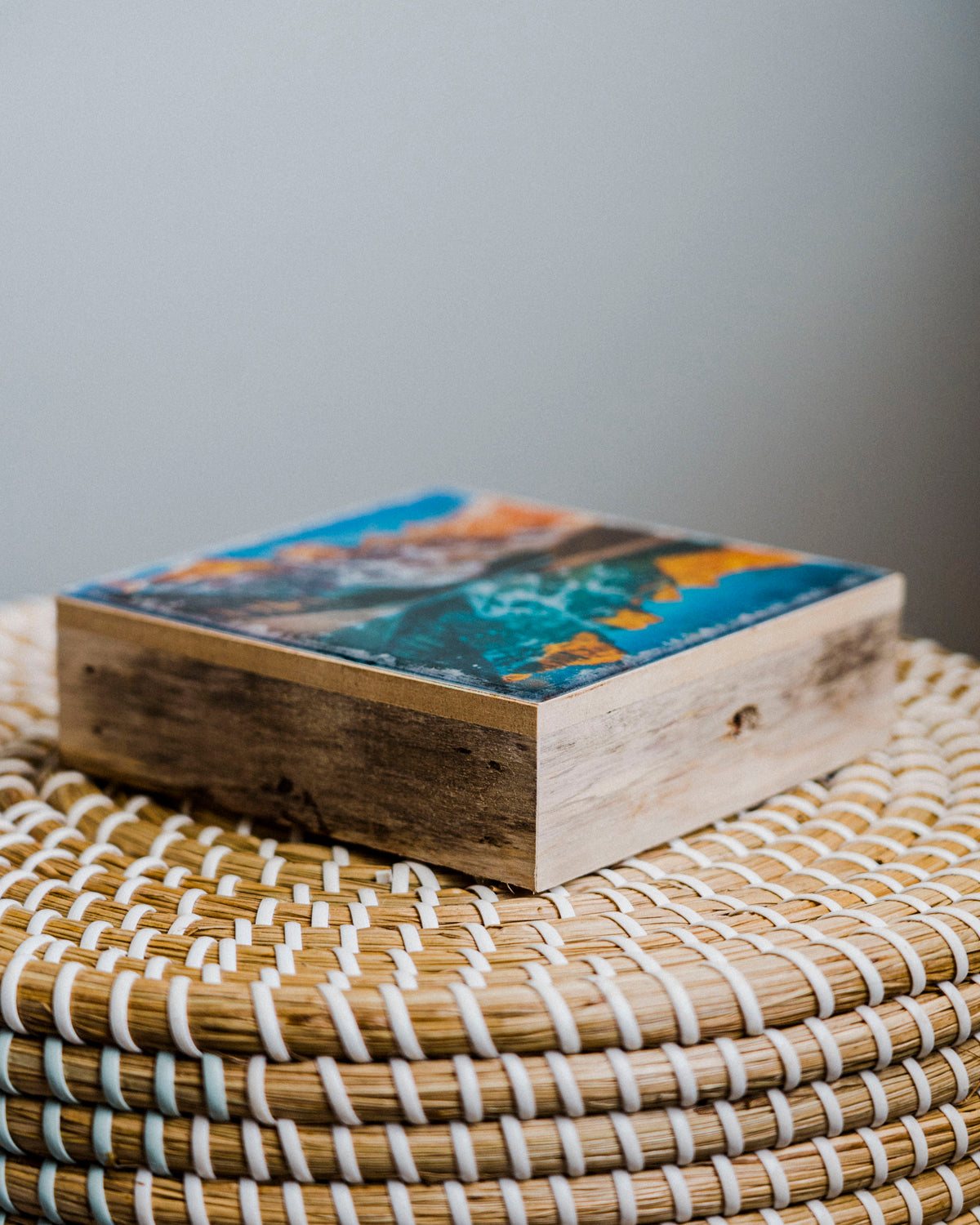 This listing is for one of North Birch Grove's 5x5" Signature Glossy Art Block with rustic barn wood sides.