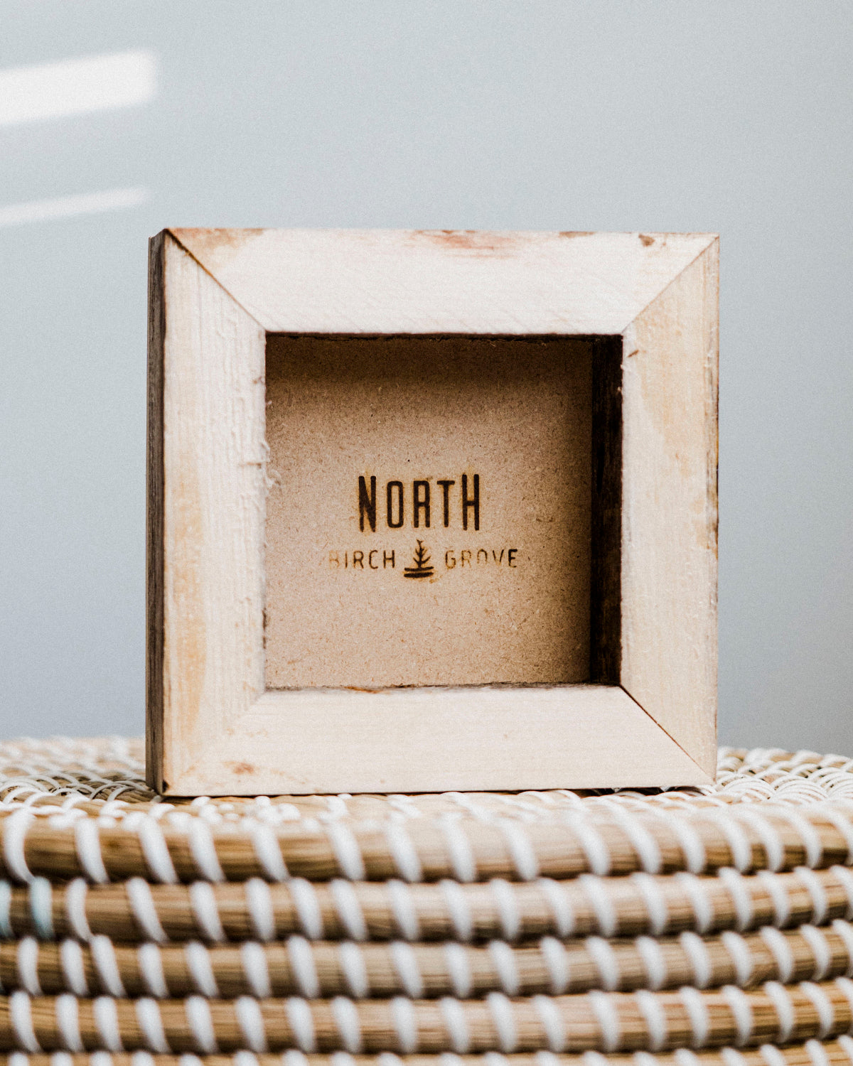 Made using a metallic paper print mounted to a wooden cradle, these pieces are truly one-of-a-kind. Created from scratch by North Birch Grove the edges are built with wood salvaged from NBG's rural family property in Northwestern Ontario.