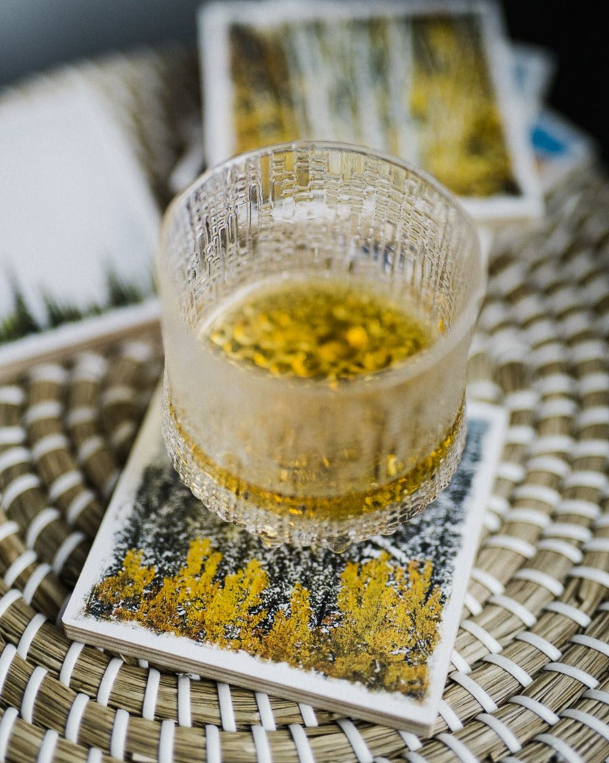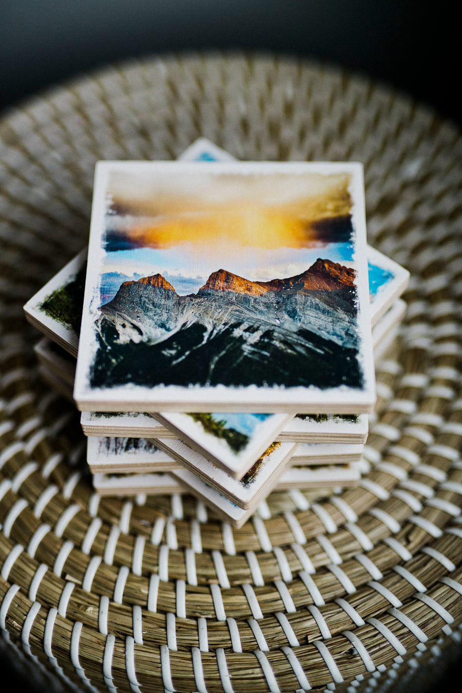 Coasters are designed by North Birch Grove.  Artwork is printed onto wood, cut + finished in Calgary Alberta Canada by our print partners + NBG.