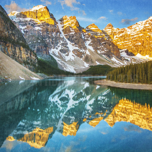 SALE 12x12" Metallic Paper Print <br>Moraine Lake Spring Sunrise Banff National Park