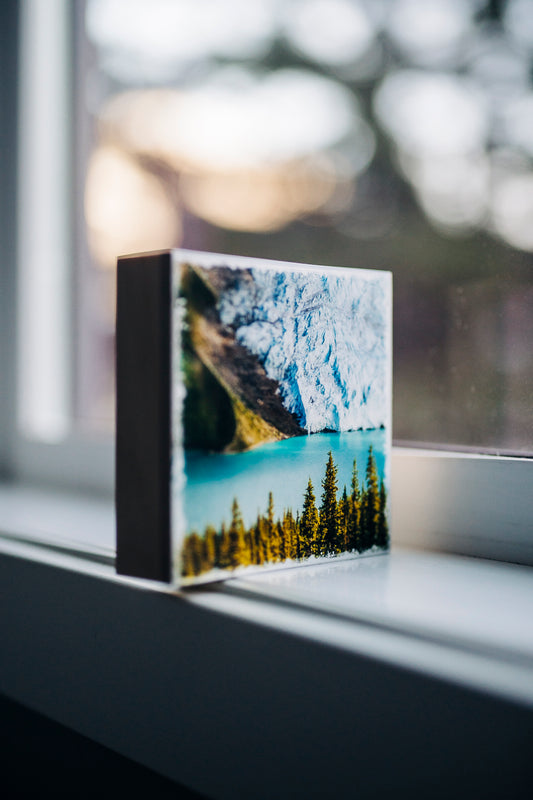 Glacial Blue Lake <br> 5x5" Signature Glossy Art Block <br> Rustic Barn Wood Edges