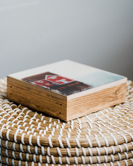 Newfoundland Red Playhouse<br> 5x5" Signature Glossy Art Block <br> Rustic Barn Wood Edges