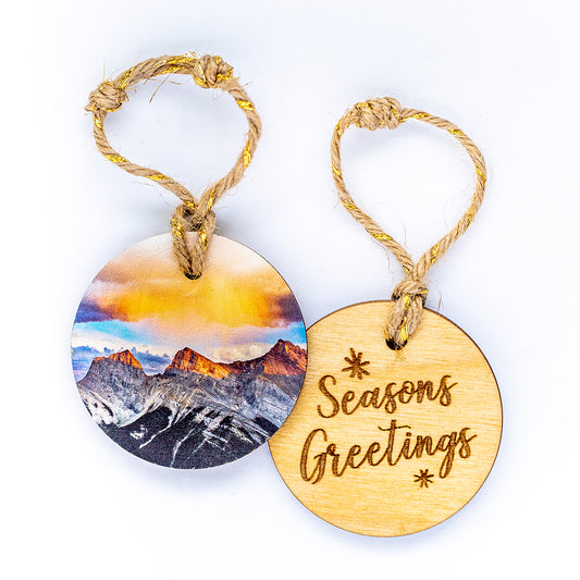 Alberta Wooden Holiday Ornament Seasons Greetings Winter Sunrise